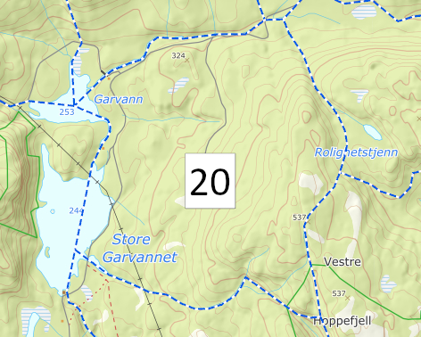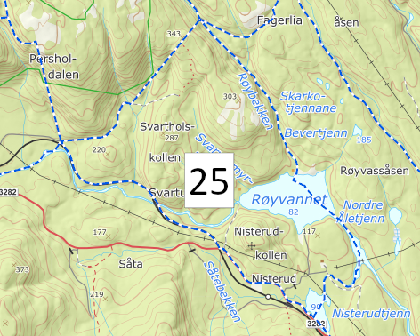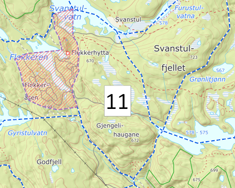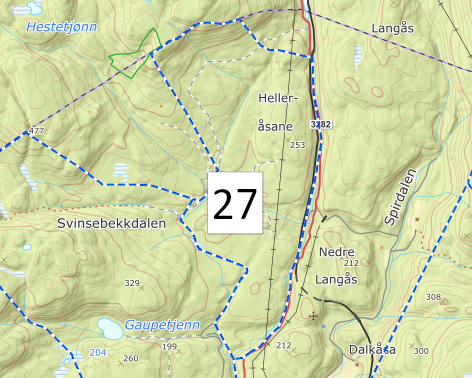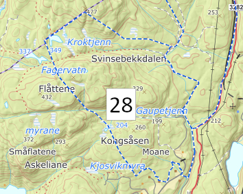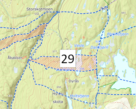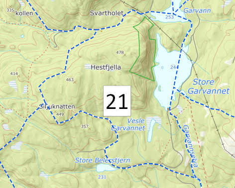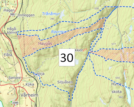 Et skogsterreng med eldre hogstfelt, bratte lier og åpne partier.