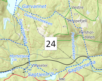 Et skogsterreng med skogkledde lier, noe åpen skog og fjellpartier.