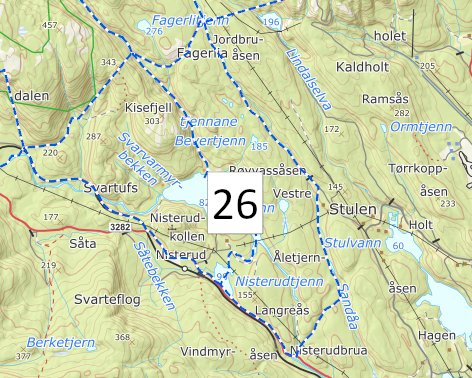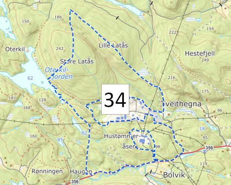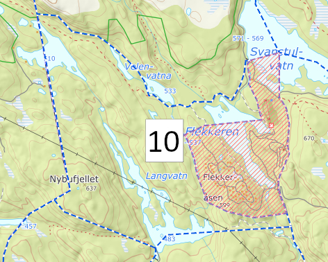 Et skogsterreng med skogkledde lier, eldre hogsflater, myrdrag og noe åpen skog.