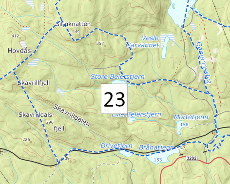 Et flott skogsterreng nord for innsjøen Eiangen.